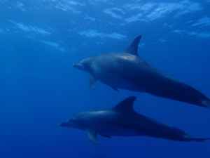 1日コース。 出港してすぐに、沖合にハシナガイルカを発見!まずはゆっくり …