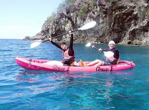 小笠原の美しいボニンブルーの海で、仲良くシーカヤック体験! ご夫婦で、と …