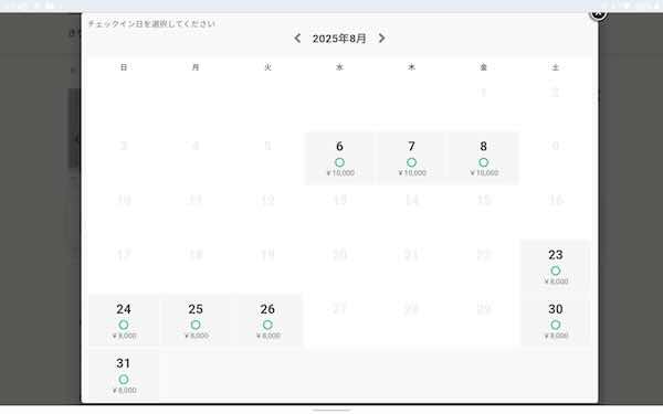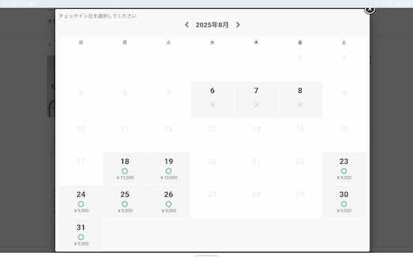 8月の5人宿泊可能部屋空き状況