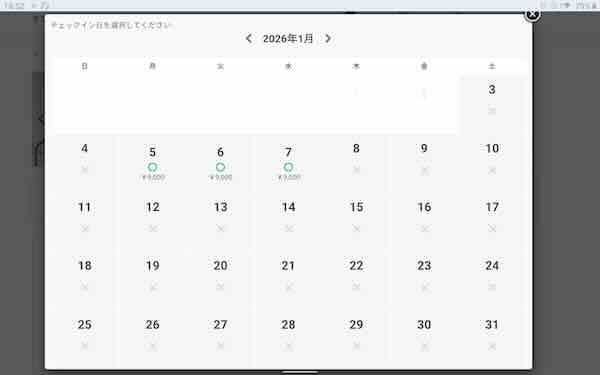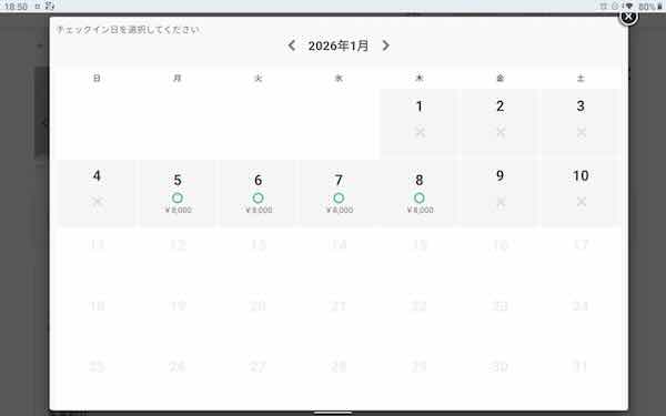 1月の5人宿泊可能部屋空き状況