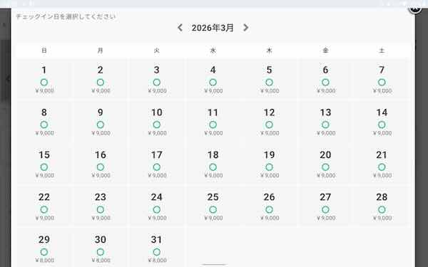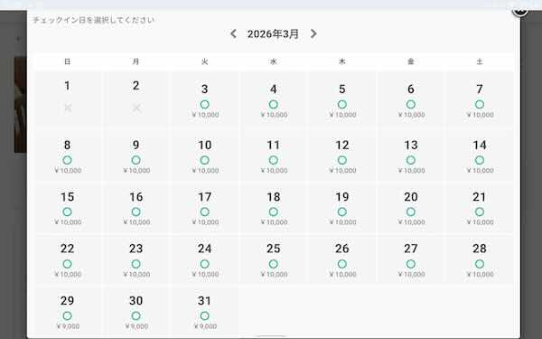 3月の空き状況です。4月3日までの予約を受け付けています。