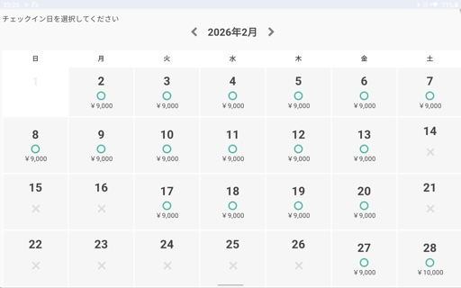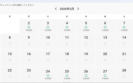 2月の5人宿泊可能部屋空き状況