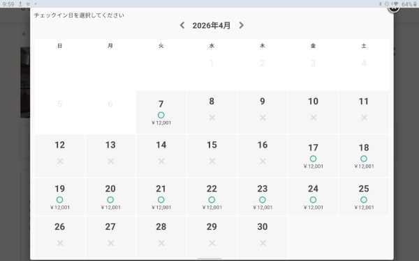4月の5人宿泊可能部屋空き状況