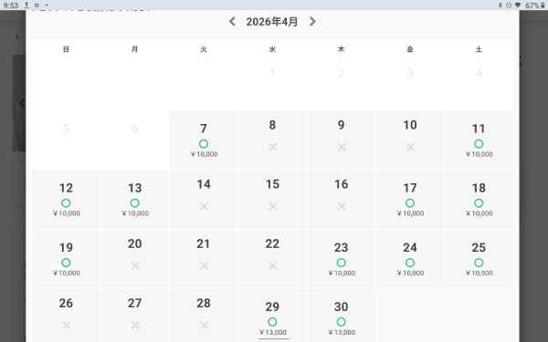 4月の個室・5人部屋の空き状況です。御予約は予約サイトからどうぞ。
