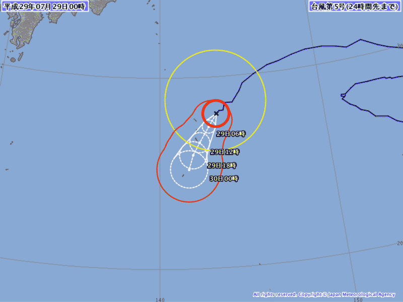 気象庁 台風情報より(平成29年07月29日00時45分)